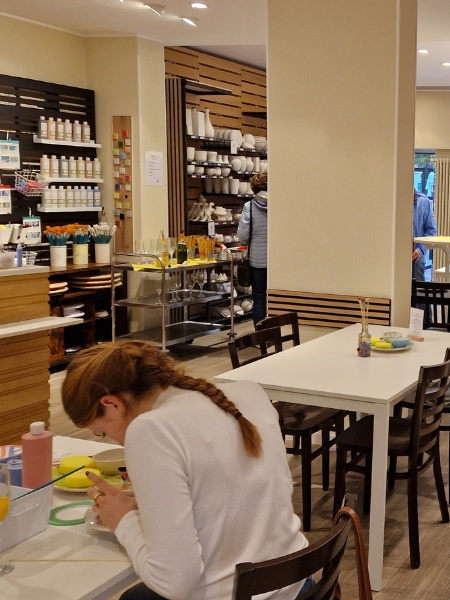 Mit regem Interesse ließen sich die Besucher von den beiden Inhaberinnen Kristina und Julia erklären, wie so ein "Malvorgang" vonstatten geht, bis hin zum Brennen der Keramik. Ab sofort können zu den Öffnungszeiten Termine gebucht werden. Das perfekte Geschenk zu allerlei Anlässen, oder auch einfach nur der besondere Event mit der Gruppe, seis als Betriebsfeier, oder auch Geburtstage. Spaß macht es allemal hinterher seine eigene Kreation in den Händen zu halten.